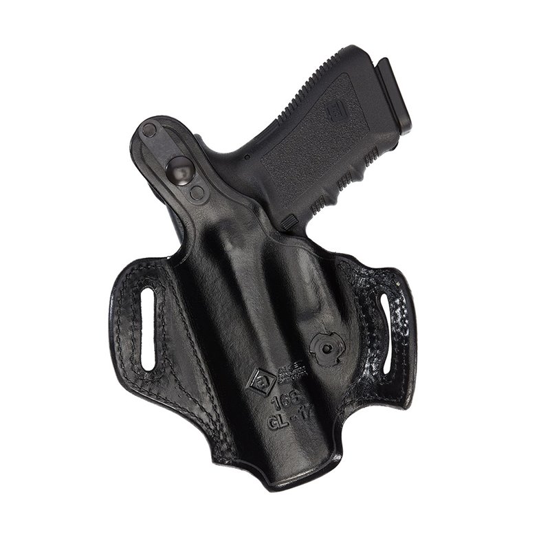 Aker Model 168 FlatSider XR12, Belt Slide Holster. What makes the Aker Model 168 FlatSider XR12 Aker's best-selling off-duty leather holster model for over 20 years? Numerous federal agencies and law enforcement departments around the world provide this holster to their academies, which at first, speaks for itself. But despite its fame, the Aker 168 FlatSider XR12 is everything a pancake holster should be and more. Seriously, once you have this in your hands, you will ask yourself why you bothered with any other gun holster before. Most pancake style holsters are molded in a generic way, with both sides of the holster equally spaced around the weapon. Aker's FlatSider series is molded with a unique and proprietary process to bring out the distinctive nature of every weapon it fits. 100% of the holster pocket is formed away from the body, leaving a flat back to let your holstered weapon sit as close to your body as possible. Then, they go over every holster by hand with whale bone to ensure that every notch, lever, nook, and cranny of your weapon is defined in the leather. This not only looks sleek and professional, but adds an extra layer of tension when drawing, giving you a similar "click" feel to that of kydex holsters. The Aker 168 FlatSider XR12 off-duty holster is the first of its kind and decades later, there are no imitations. Even plastic molded holsters cannot achieve the detail and quality of their molding process. Plus, at either side of the holster are curved belt loops that accommodate belts up to 1.75" width, molded to make inserting your belt smooth and also keeping your holster secure on the belt and prevents wear-and-tear on your belt or sagging of the slots. You need retention? This leather holster has it, with the thumb break retention strap and an adjustable tension screw for you to adjust the residence of your draw. It even does double duty as a trigger guard stop. Speaking of your trigger, did we mention that the holster is designed to fully cover the trigger, preventing any accidental discharge? They always have your safety in mind. Every Aker Leather product has details that only the most discerning person can notice. On the outside of the leather holster, they added a row of stitching around the belt slots. And this is not just for looks since the extra stitching makes sure the leather does not stretch or sag with years of use. Inside the holster, they have a full-length molded sight channel to allow for standard and raised to move through the holster without snagging or ripping the leather along the way. The special dual-plain muzzle with a .25" cut-out is expertly designed to work with both standard and shortened barrels. Aker FlatSider XR12, Model 168 Belt Slide Holster w/Thumb Break Features: