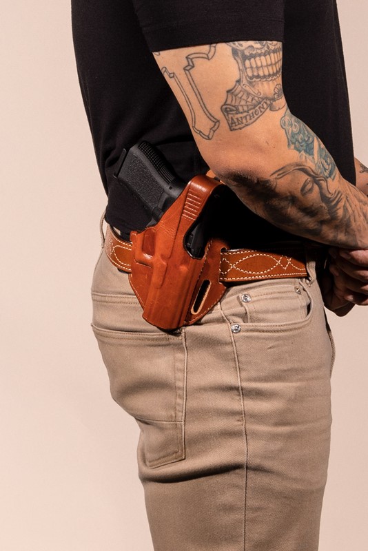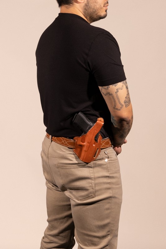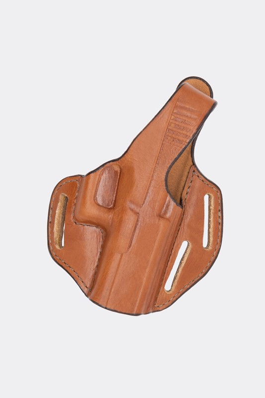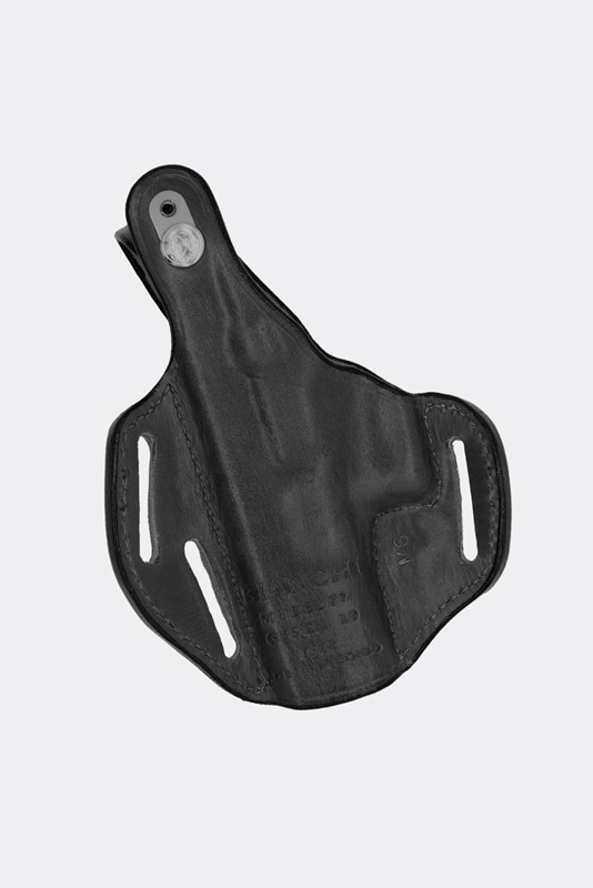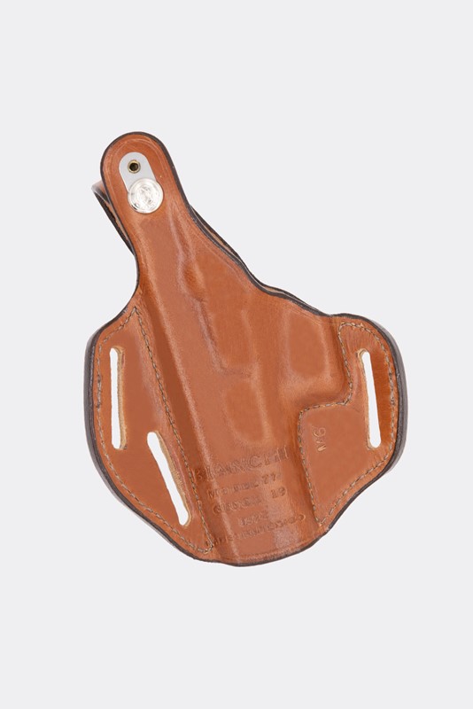 ![]() Bianchi Piranha Pancake Holster Model 77. Handcrafted of premium, full grain leather, the Bianchi Piranha Pancake-Style Holster Model 77 is contour molded for a sleek look and excellent fit. It features a unique, low cut front that allows for a swift draw stroke. The 3-slot design offers custom cant adjustment for user preference and allows for both strongside and cross-draw carry. It has a 15-degree strongside cant and fits up to 1.75 in. belt widths. Bianchi Piranha Pancake Holster Model 77 Features: