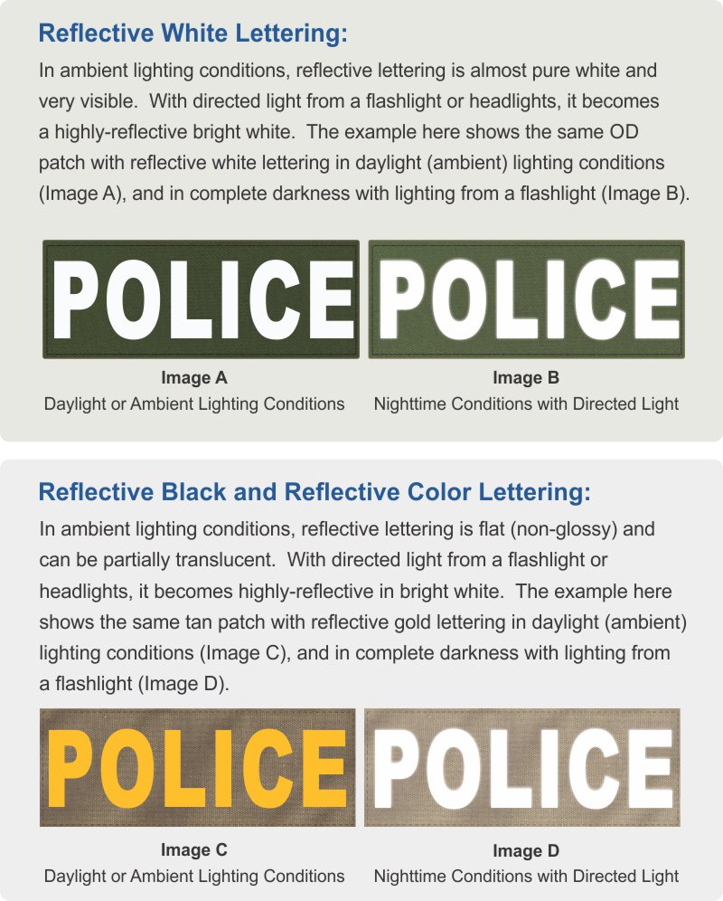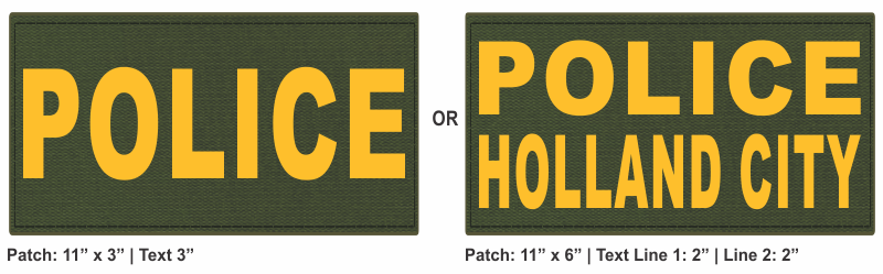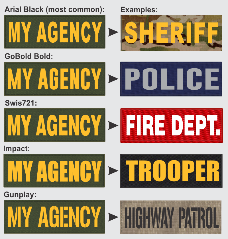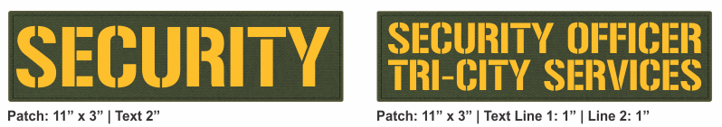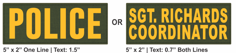 Build your custom tactical identification patches on-line with fast turnaround. These hook-backed panels display your agency/unit information in large bold lettering in a wide choice of sizes and colors. The custom content is plotter-cut on polyurethane film and permanently heat-fused to a tough, abrasion-resistant 500 denier ballistic fabric that is sewn to a flexible industrial hook backing. The completed product mates with the soft loop material on tactical vests, outerwear, packs and bags. They are extremely durable, removable, and carry a full one-year warranty against material and workmanship defects. The cost is reasonable, no setup fees, no minimum quantity and fast turnaround. Ideal for: