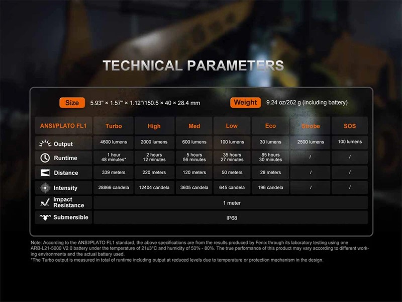 Fenix C7 Pro Rechargeable Flashlight Specs: