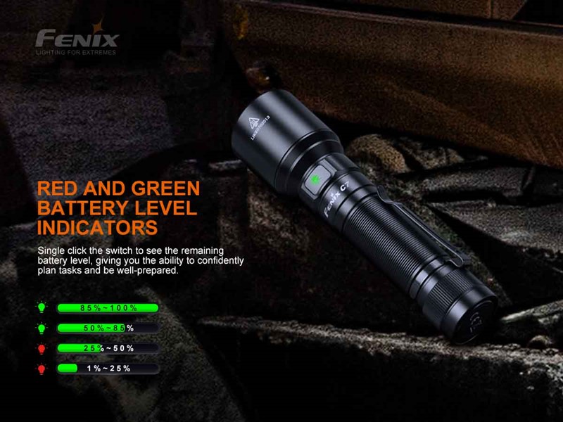 ![]() Fenix C7 Work Flashlight - 3000 Lumens. The Fenix C7 Flashlight is a high-performance flashlight that is the perfect tool for industrial and maintenance operations. Delivering up to 3000 lumens, the Fenix C7 flashlight can throw that light a maximum distance of 1542ft (470m). Always know the battery's status with the battery level indicator and keep the included 5000mAh battery charged via the USB Type-C port. The magnetic base on the Fenix C7 allows you to attach the flashlight to most metal surfaces for hands-free lighting. Waterproof, dustproof and impact resistant to 1m, the C7 Flashlight is built tough enough to withstand anything your job site can dish out. *Does not have a tail switch. Fenix C7 Work Flashlight Features: