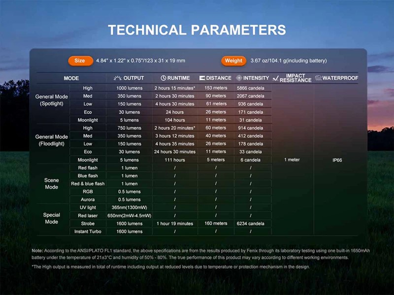 Fenix E06R Pro Flat Rechargeable Flashlight Specs: