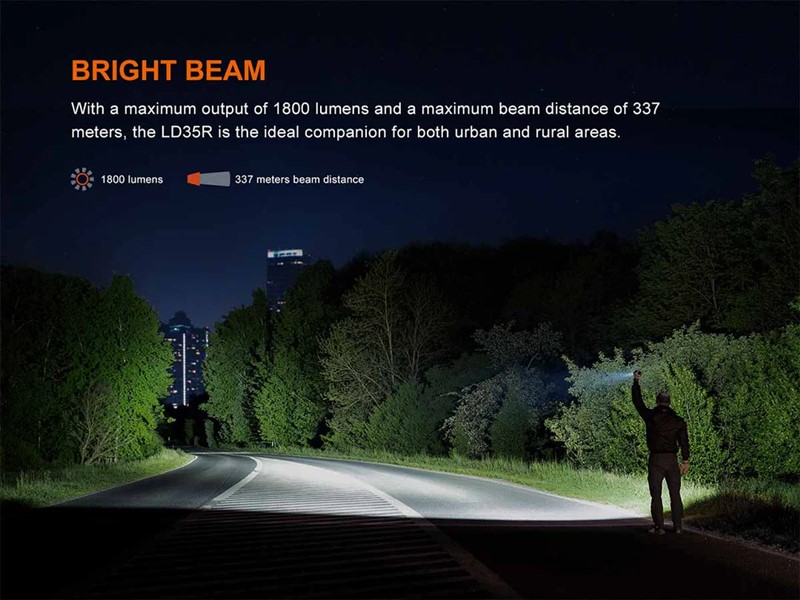 ![]() Fenix LD35R Multipurpose Flashlight - 1800 Lumens. Need a flashlight that can do it all? Then the Fenix LD35R is the light for you. At a glance, it may look like your standard flashlight, but with its three lighting sources, color modes, strobe, glass-breaking tips, and magnetic tail, the LD35R is anything but typical. Starting with the flashlight's forward-facing beam, this light puts out a maximum of 1800 lumens up to 1106ft (337m) over five lighting modes. The LD35R has two more lights, though'one on each side of the flashlight's head. These diffused side lights emit a soft white, lantern-like illumination, plus offer several combinations of red, blue, and flashing modes. Beyond illumination, this flashlight is emergency-ready with glass-breaking tips, strobe, and SOS. With its magnetic tail, it can also be attached to most metal surfaces and go hands-free. The Fenix LD35R is more than just a flashlight; it's a lighting multi-tool ready for anything. Fenix LD35R Multipurpose Flashlight Features: