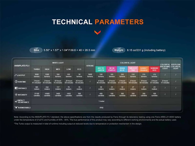 Fenix LD36R Multicolor Flashlight Specs: