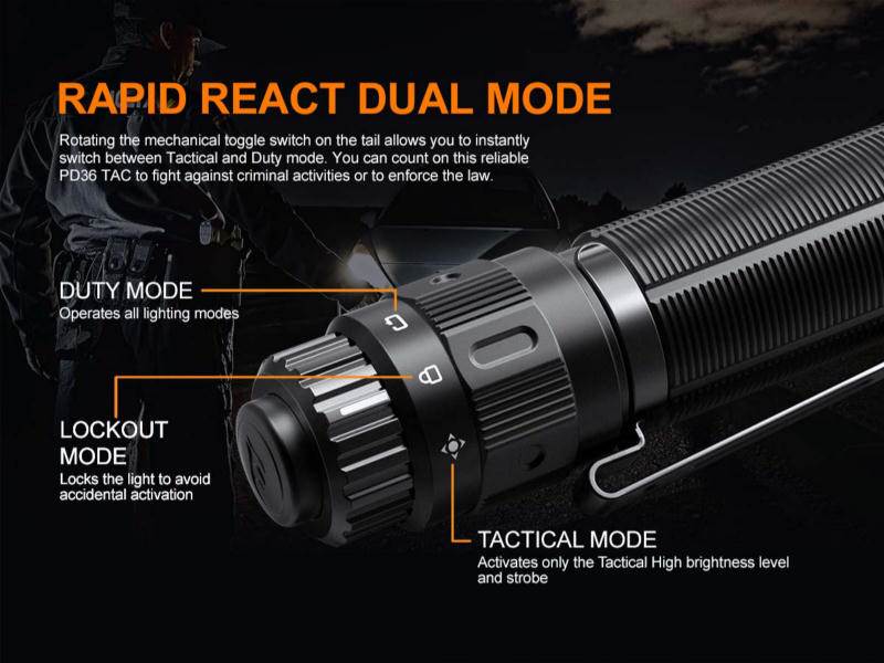 Fenix PD36 TAC LED Flashlight Duty Mode Specs: