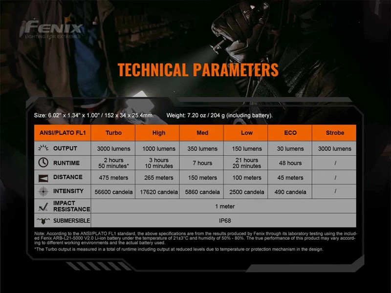 *Please note this light requires a wall charger that is at least 2 AMPS for proper charging. Fenix TK20R V2.0 Specs: