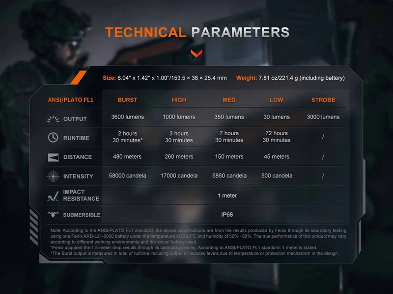 Fenix TK21R Tactical Flashlight Specs: