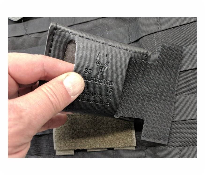 Note: Not intended for firearm holsters or accessories over three pounds. Del Molle Panel - Belt Loop Accessory Attachment - 2.0. This 4x4 Del Molle Panel is the ideal solution for affixing standard Sam Browne belt loop accessories anywhere on your molle vest, tactical vest, rifle bag, gear bag or any surface with standard Molle loops. Now you can easily affix belt loop pouches and holders to your tactical vest. This includes flashlight holders, OC holders, cuff cases, admin pouches and glove pouches. The panel backing consists of bartacked hook-and-loop strips that feed through molle loops and then affix to the back if the panel. Once set up it will stay firmly in place, but can be moved over and over again. The front surface is covered with 100% loop component. The 'H' shape hook panel is slipped through the belt loop of the accessory. Then the accessory is simply pressed onto the loop surface. The result is a secure, semi-permanent installation that can be relocated over and over. Package contains one set for mounting one belt loop accessory. Del Molle Panel Features: