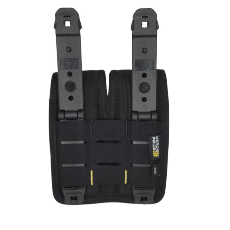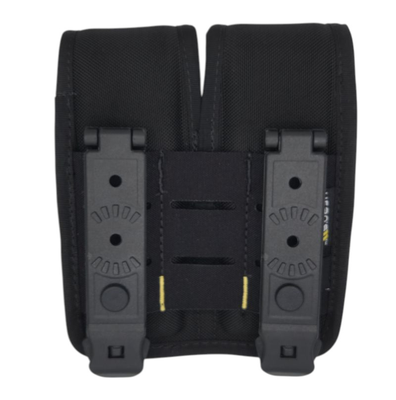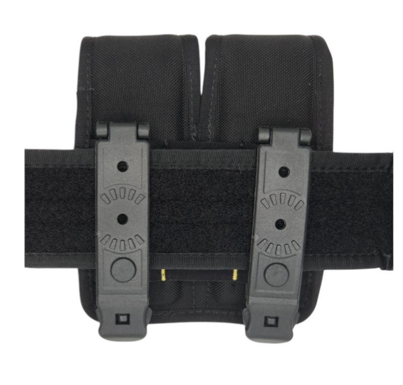 Hero's Pride Ballistic Tac - Closed Top Magazine Pouch. This exceptionally-sturdy double magazine pouch lightweight and brilliantly designed to function with both MOLLE vests and standard duty belts up to 2.25" wide. The rigid hinge clips easily thread through MOLLE panels and easily finction an secure clips for fastening to standard duty belts.