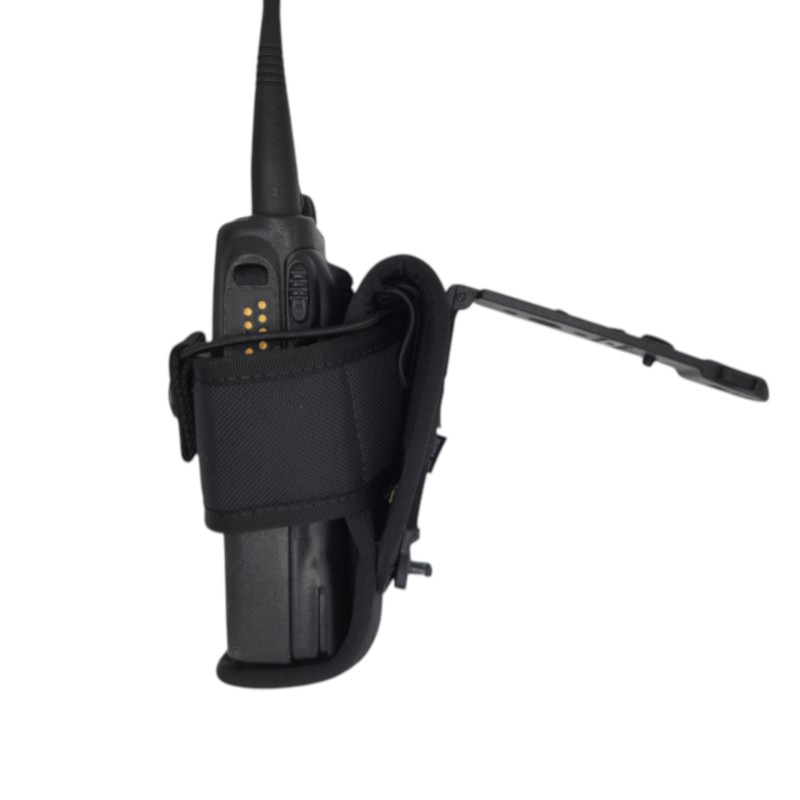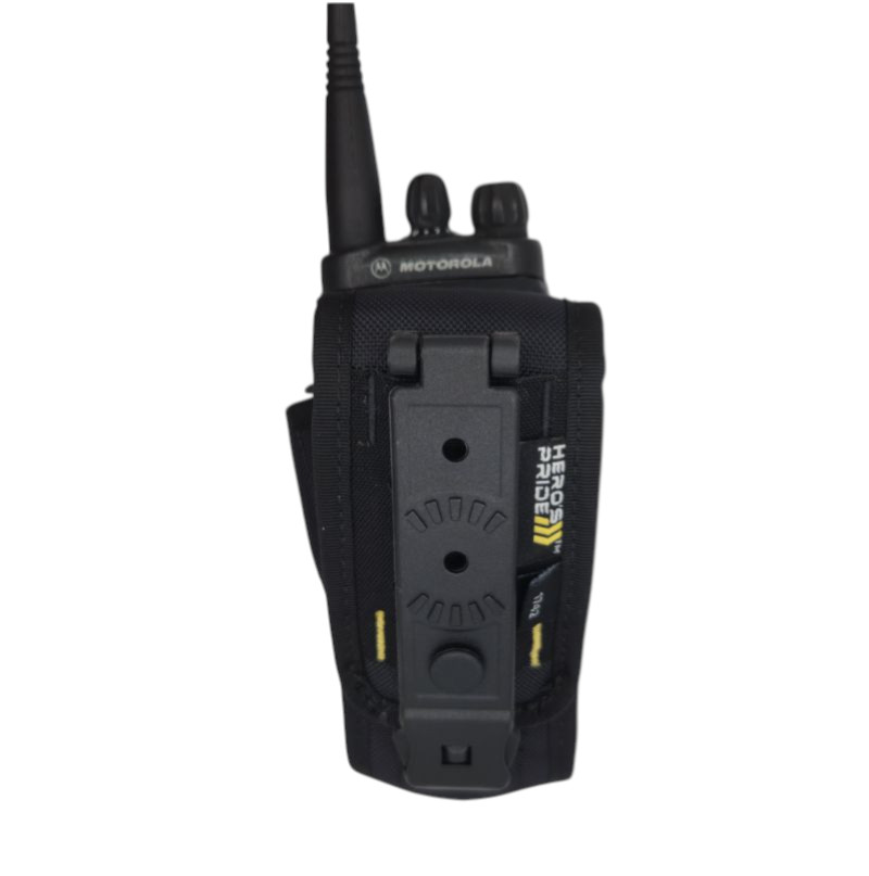 Hero's Pride Ballistic Tac - Universal Radio Holder. Universal holder adjusts to fits most portable radios. This holder is constructed with 1680 denier ballistic material to provide lightweight comfort and protection for your radio. It has molded design for secure placement and quick, easy in/out access.