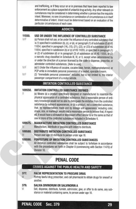 ![]() Qwik-Code 2026 California Drug Laws - Law Summaries. The Qwik-Code 2026 California Drug Laws - Law Summaries reference is particularly useful for law enforcement officers, legal practitioners, educators, and citizens seeking to understand the state's evolving drug laws. Qwik-Code 2026 California Drug Laws - Law Summaries Key Features: