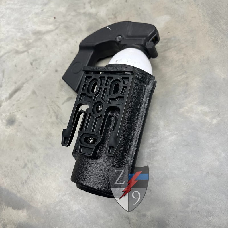 ![]() Zero9 Duty OC/Pepper Spray Cases - MK9. Zero9 OC/Pepper Spray case is a custom, ruggedized case for your Mark 9 OC/Pepper Spray can. The Zero9 Mark 9 OC/Pepper Spray case (riot control/corrections area fogger) has an adjustable retention to fit more brands. Can be mounted to a leg shroud using the included attachment hardware (Leg Shroud NOT Included). Ambidextrous, mounting holes on both sides to provide mounting flexibility. These cases are compatible with the Safariland QLS - (QLS not provided). Zero9 OC/Pepper Spray MK9 Can Case Information: